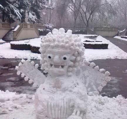 这个雪狮子是怎么堆出来的?